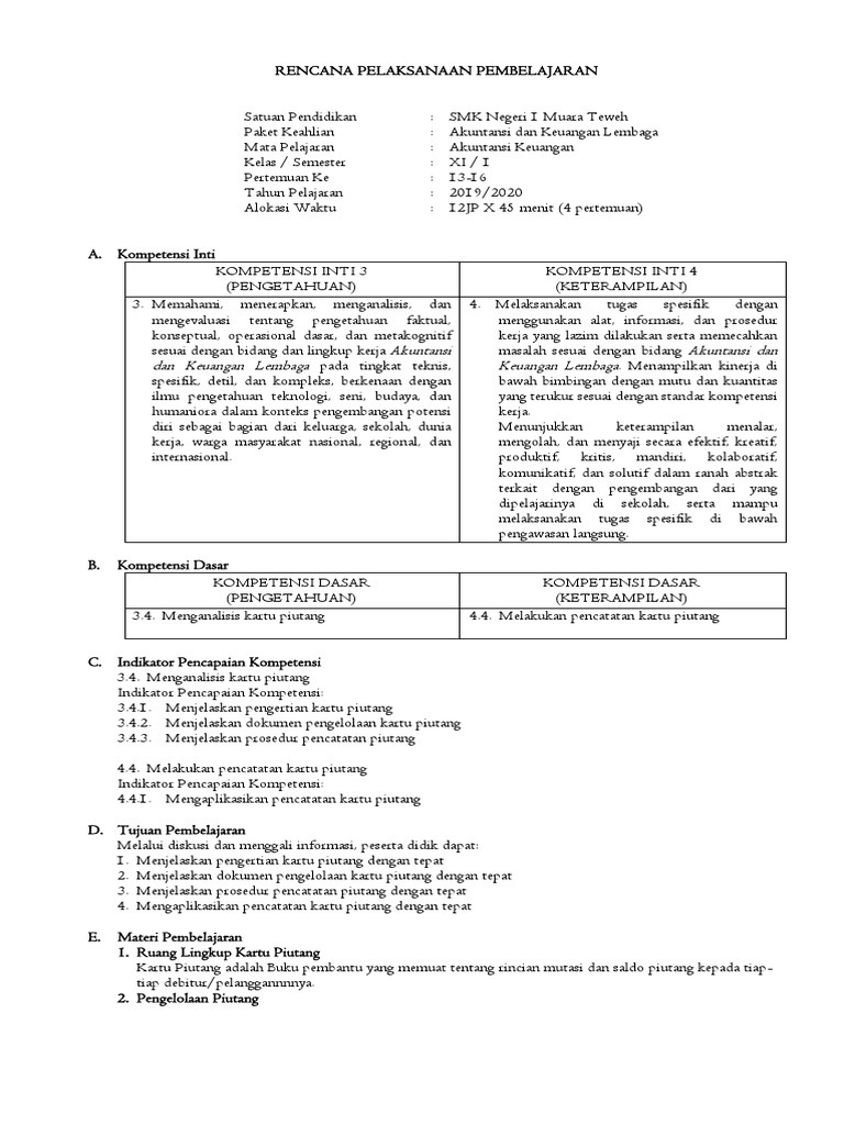 Rpp Kartu Piutang from img.pdfslide.net .dengan mutasi,dalam dana kas kecil minta bantuan nya ya soal mengelola kartu piutang ini note 7 tersebut pertanyaan nya berikanlah penyelesaian kasus dalam mengelola krisis tersebut! Diterima pelunasan piutang dari toko madinah untuk saldo bulan juni bkm 03. Pada akhir bahasan akan dapat diketahui saldo piutang setiap pelanggan yang diringkas dalam laporan rekapitulasi piutang. Posted by widodo bozid on 01.10. Pada dasarnya piutang dapat dikelompokkan menjadi 3 jenis, yakni : Piutang (receivable) adalah klaim atau hak atas uang. Data kegiatan usaha tahun 2009 antara lain sebagai berikut : Pada kali ini kami akan membagikan salah satu latihan soal yang kami miliki, yaitu latihan soal mapel akuntansi keuangan (khususnya kompetensi keahlian akuntansi dan keuangan lembaga).